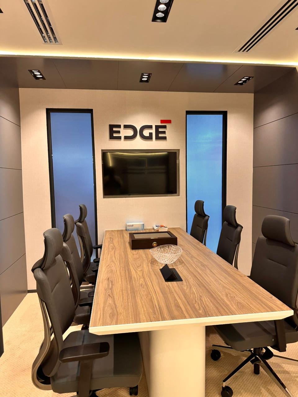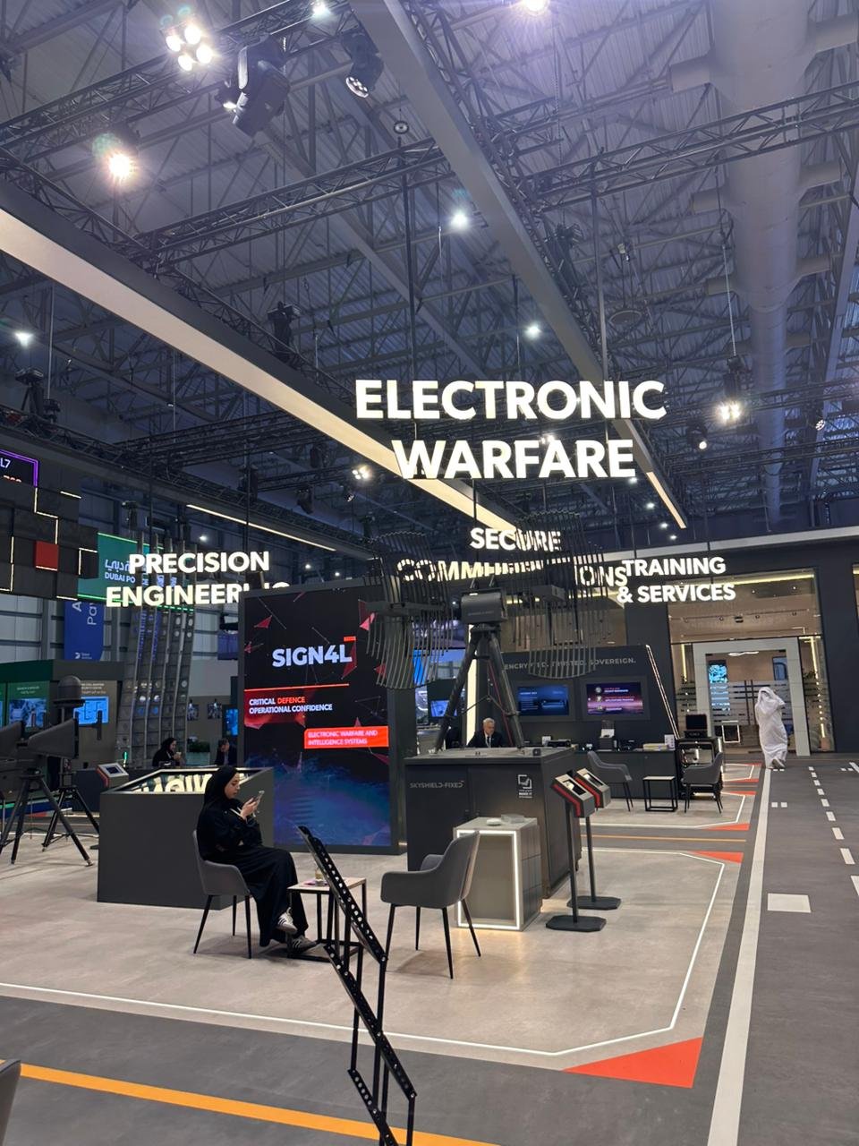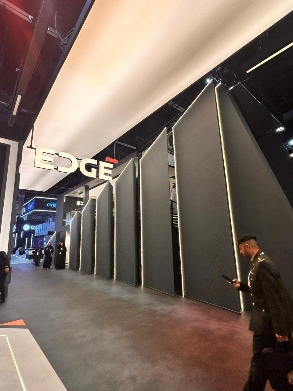 Completed electrical installation works for EDGE exhibition Stand During International Defence Exhibition & Conference including lighting systems and power distribution.