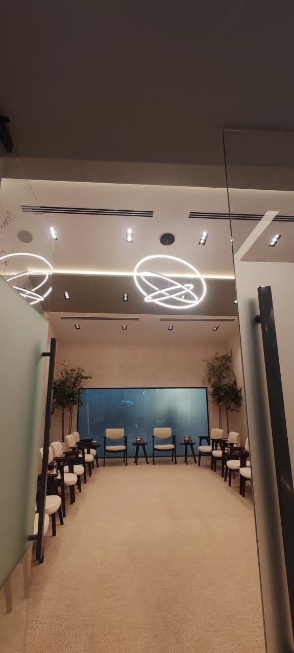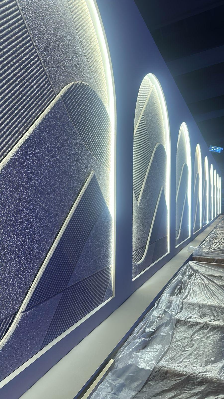 Completed electrical installation works for Brasil Pavilion during WHX at Expo 2020 Dubai, including lighting systems and power distribution.