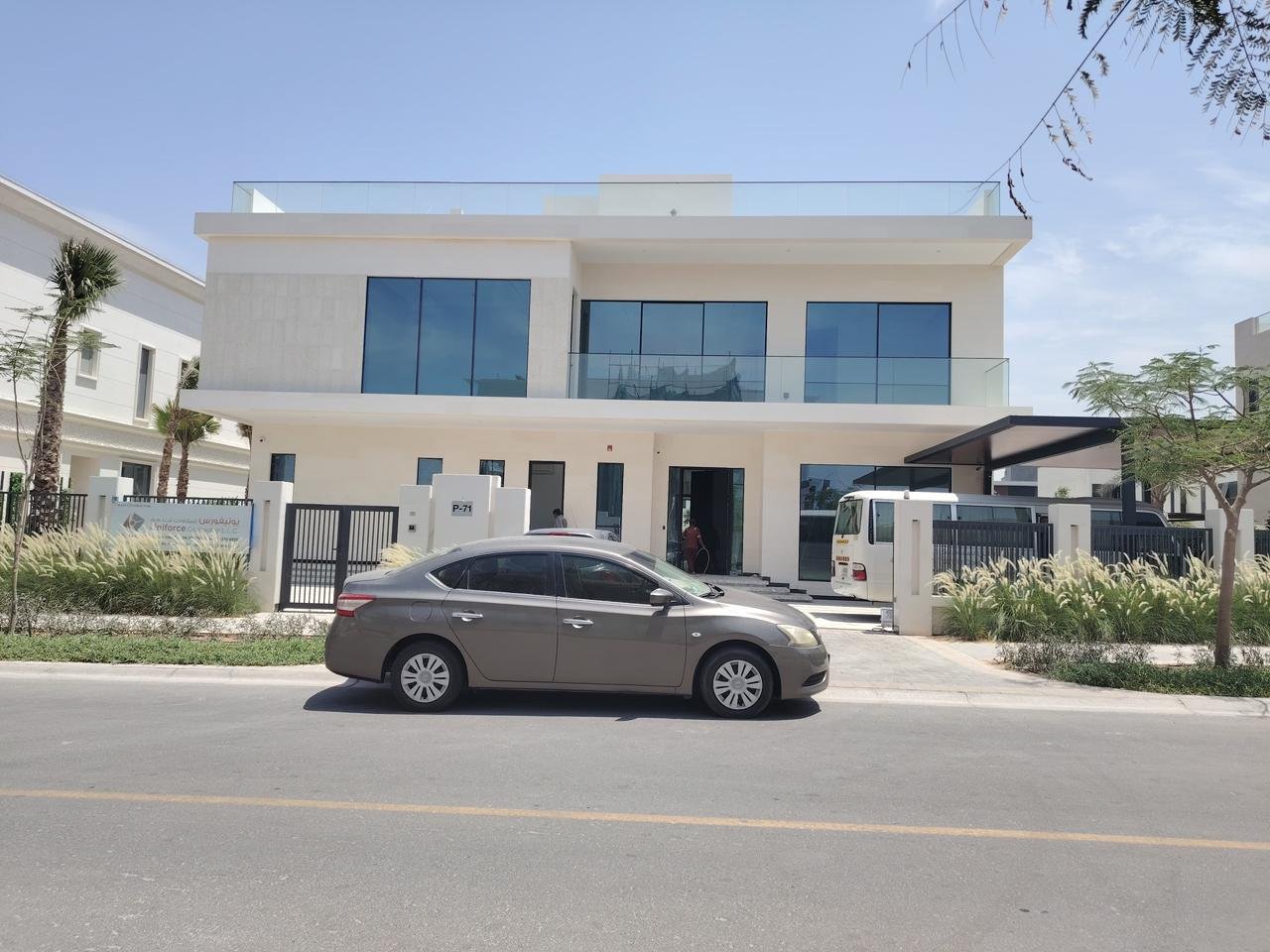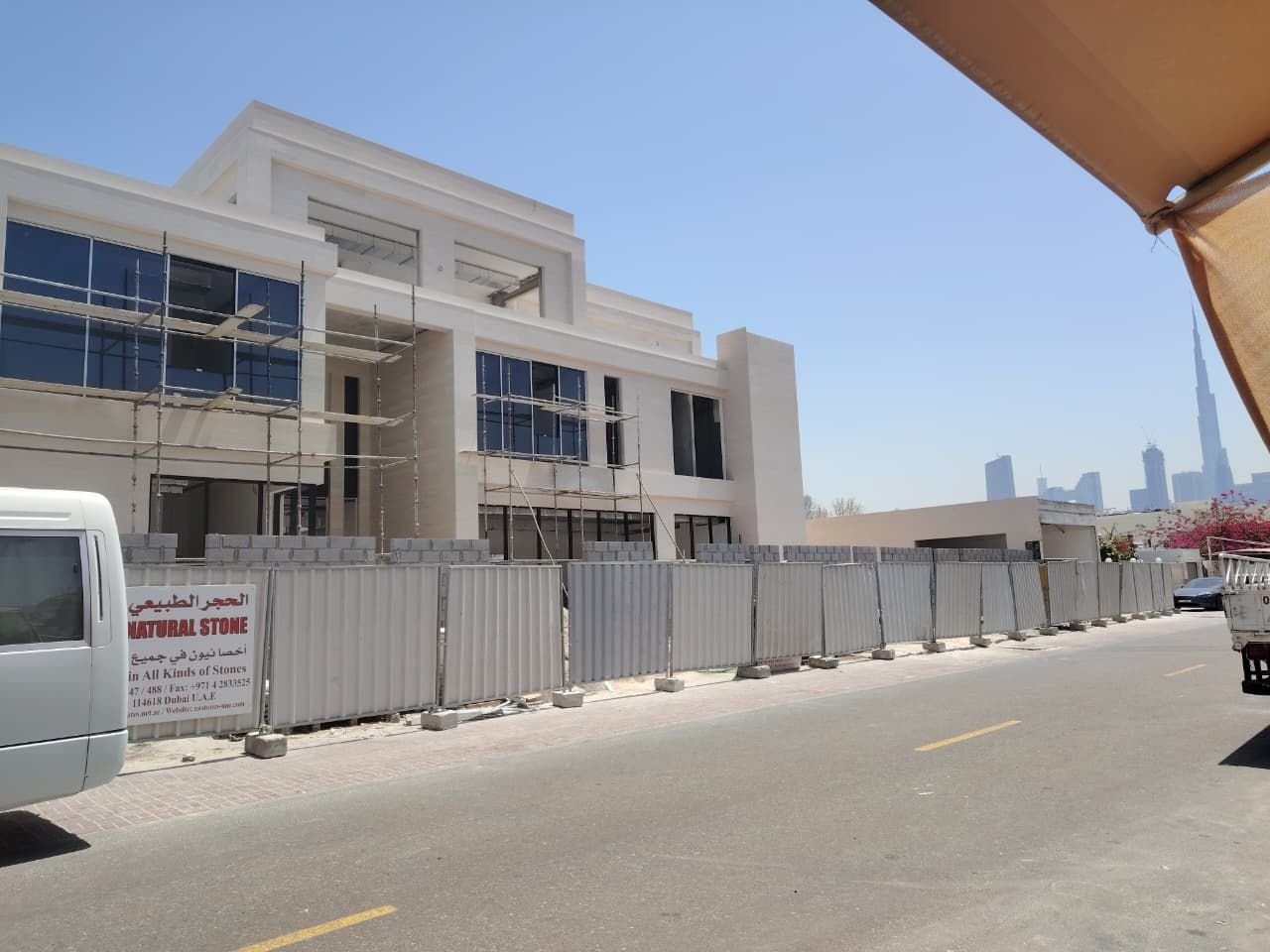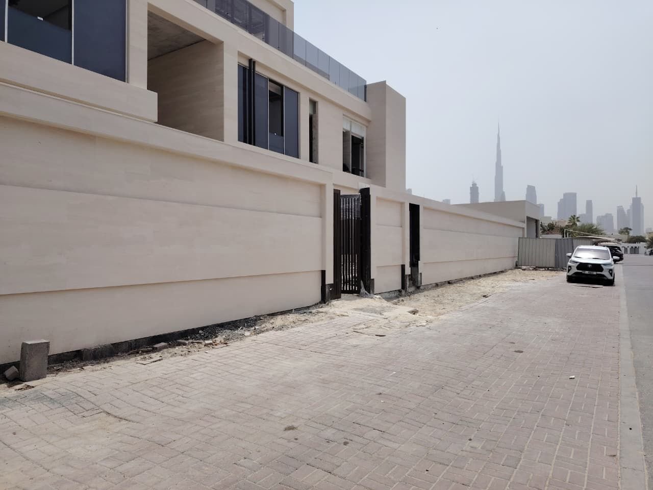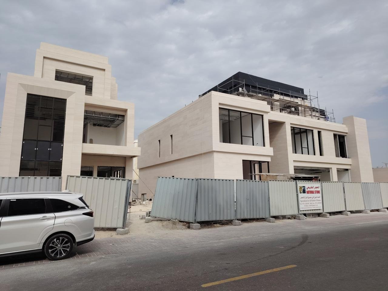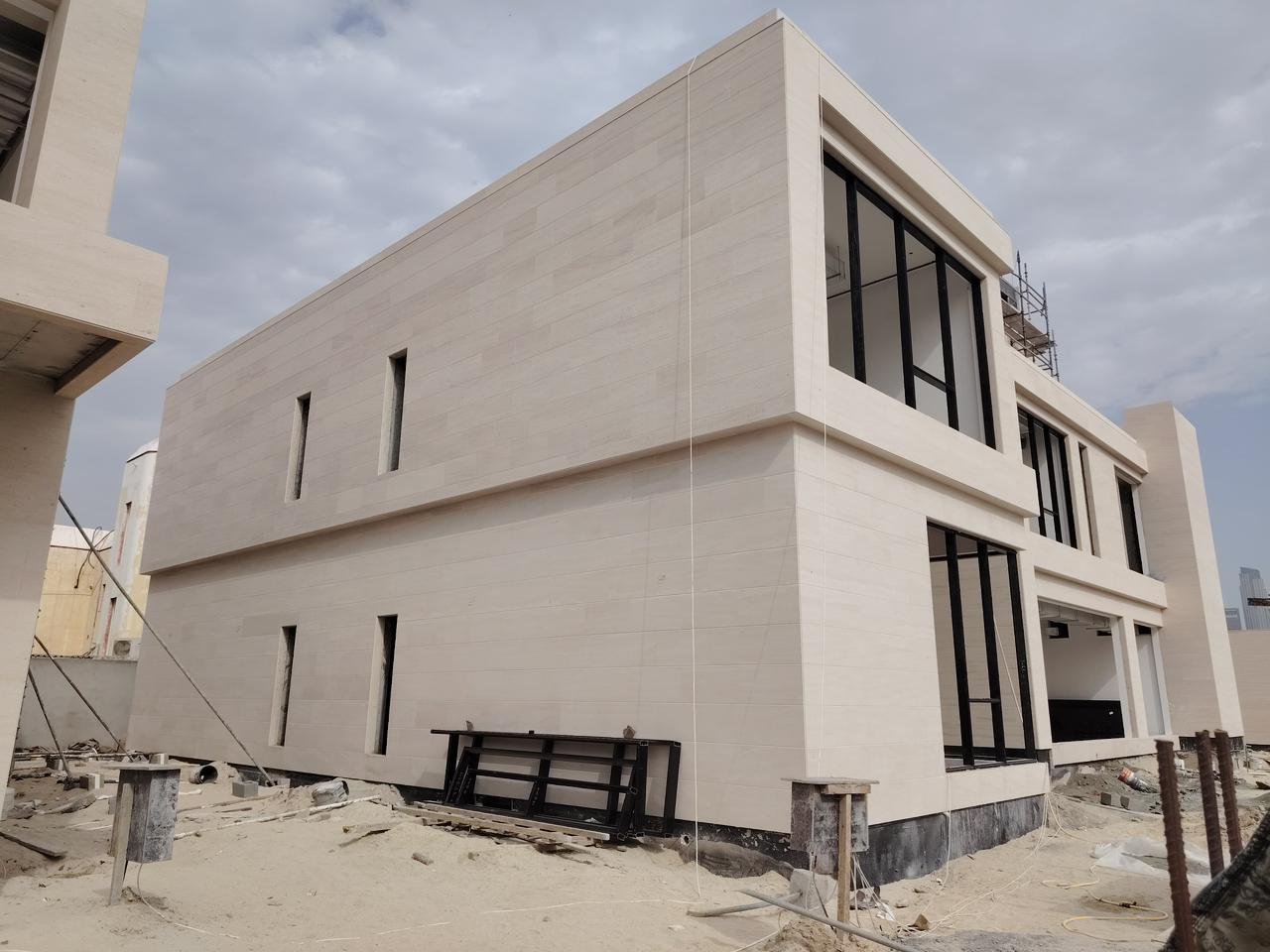 Completed marble cladding works for residential villa exterior finishing.